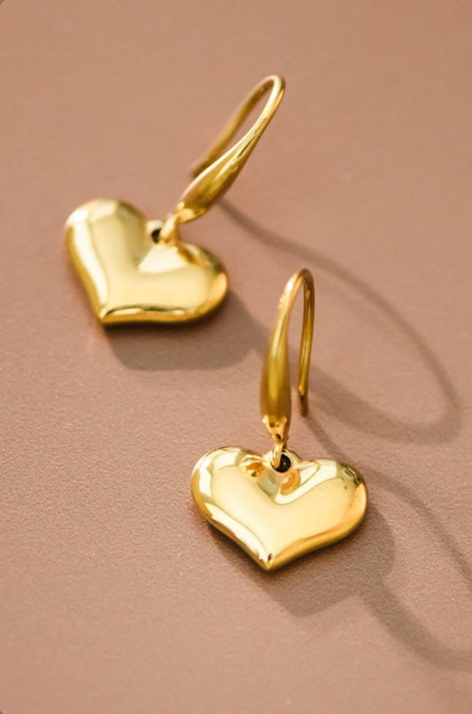 Triple Heart Dangle Gold Earrings | Water Resistant