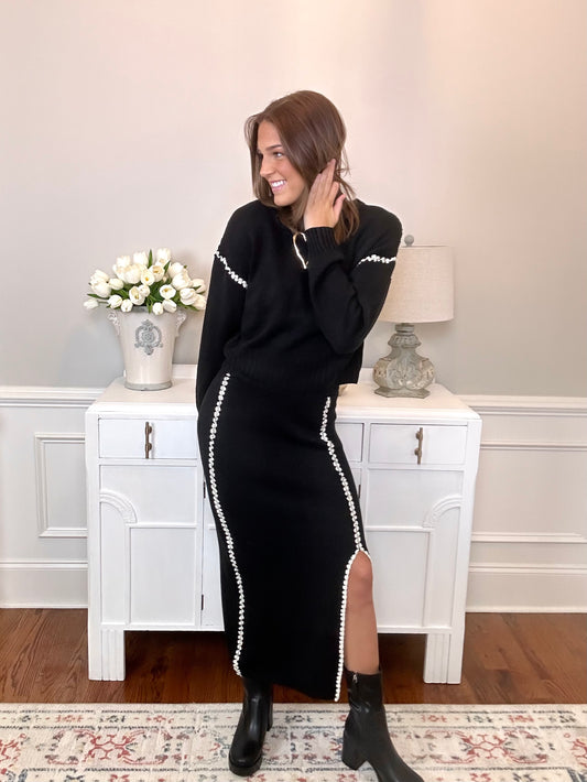 *LAST ONE* Scarlet 2 Piece Top & Skirt Sweater Set | Black