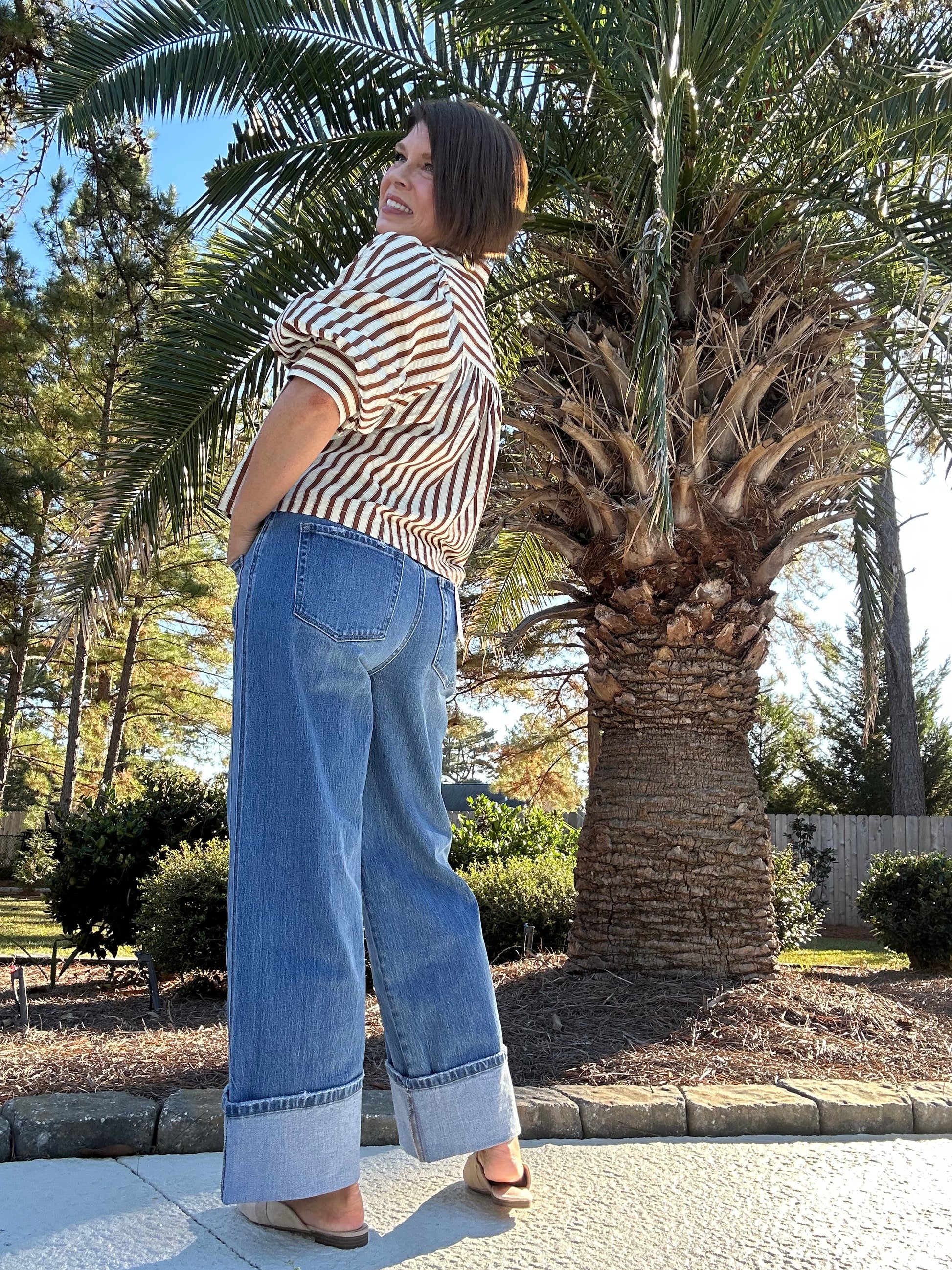 High Rise Cuffed Baggy Wide Jean By Vervet