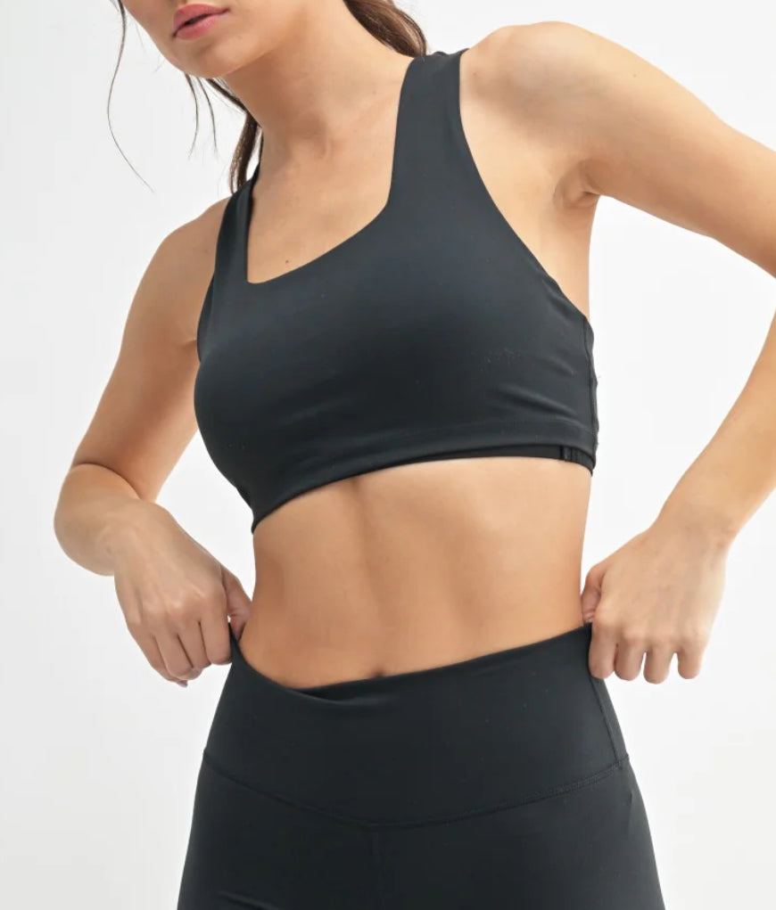 Sports Bra: Square-neck buttery soft sports bra. Its stretchy, comfortable fabric lets you move with ease, whether you're at the gym or on the go.